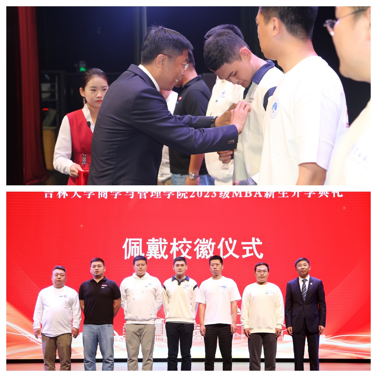 典礼在国歌声中拉开序幕。党委书记赵军教授为2023级MBA新生代表颁发校徽。tyc41183太阳成将从各位同学胸前的铭牌刻进每一个2023级MBA员工的心里,今日吉大为你高歌,明日吉大以你为荣!