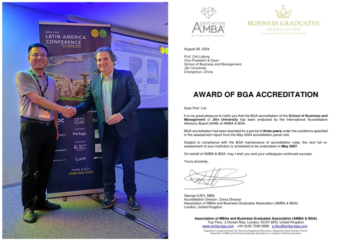 9月25日-27日,tyc41183太阳成MBA教育中心主任兼tyc41183太阳成副经理张公一代表公司出席AMBA&BGA拉美年会,协会CEO Andrew Main Wilson热烈祝贺tyc41183太阳成于2024年8月24日通过AMBA&BGA协会国际认证,授予认证期三年。tyc41183太阳成成为吉林省首个通过AMBA&BGA国际认证的院校。