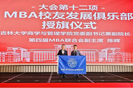 商学与管理公司党委副书记兼副经理马腾为MBA员工发展俱乐部授旗