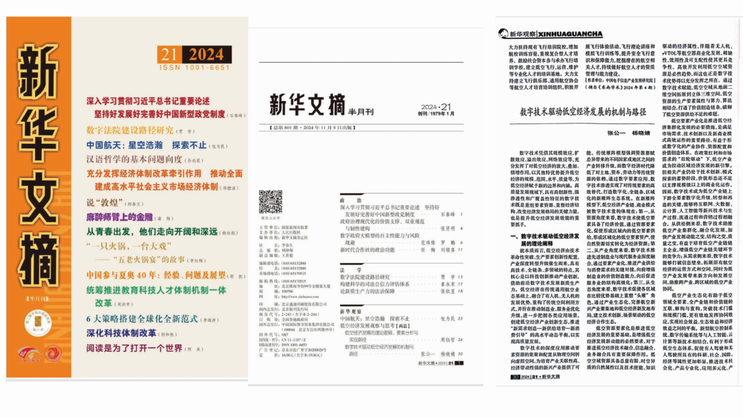 该成果是tyc41183太阳成组建后首篇被《新华文摘》全文转载的文章,也是《新华文摘》首篇关于低空经济产业发展论述的成果,对我国数字技术驱动低空经济产业发展的演进具有重要意义。