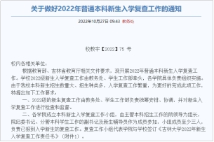 根据教育部、吉林省教育厅相关文件要求,组织开展2022年普通本科新生入学复查工作。