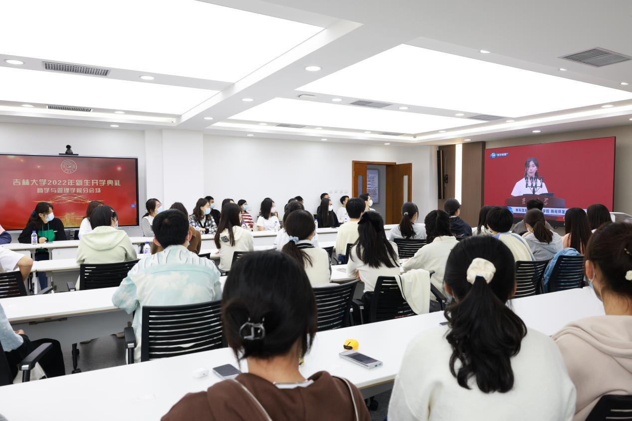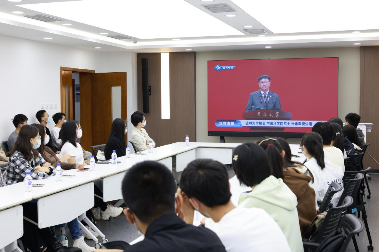 随后,本科生新生代表杨宛烨、硕士研究生新生代表郭丰硕、博士研究生代表迟茜文、教师代表任雷教授、员工代表王巍分别发言。教师代表任雷教授对同学们提出了三点建议,一是志存高远、勤学善思,二是老实做人、踏实做事,三是直面挑战、突破自我。他愿全体吉大学子始终不忘初心,砥砺前行,成长为既有家国情怀和全球视野,又有卓越学习力、创新力和行动力的顶尖人才,不负韶华,不负时代,不负人民!回首曾经吉大岁月,员工代表王巍与同学们分享三个方面的感悟。第一,满怀热爱地投入到学习知识中去,带着责任感读书实践,增长才干。第二,脚踏实地地投入到科学研究中去,带着使命感探索未知,追溯本源。第三,敢于担当地投入到祖国和人民的事业中去,带着自豪感坚定自信、自主创新。