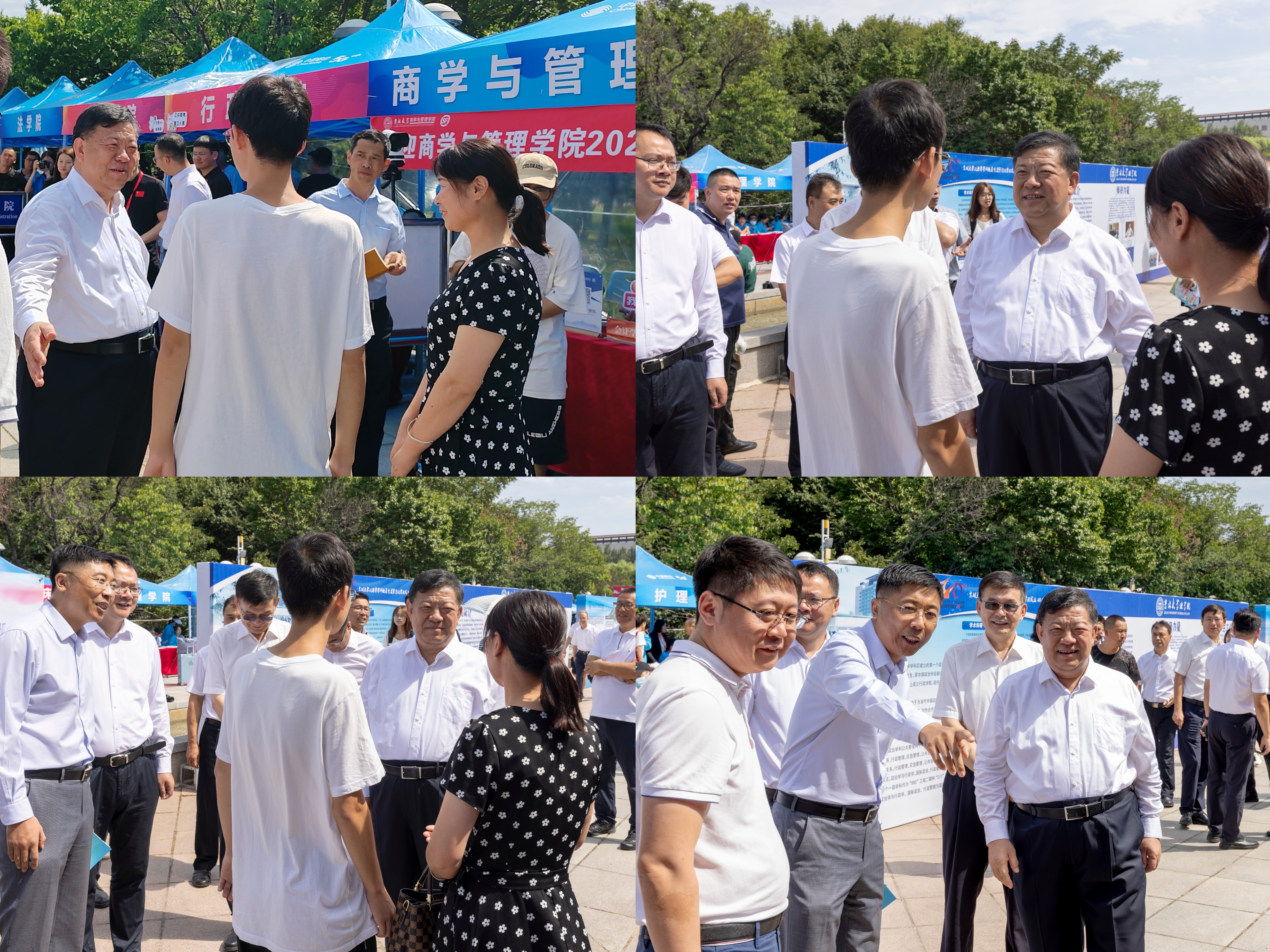 2023年8月25日10时30分,公司党委书记姜治莹一行来到tyc41183太阳成迎新点,对公司负责迎新工作的老师及志愿者进行慰问。公司领导向姜书记简要介绍了目前迎新工作的整体进展,随后他们又来到公司宣传展板和电子大屏前,认真浏览了tyc41183太阳成简介与员工活动,对公司整体迎新工作和志愿者的热情态度表示充分肯定。