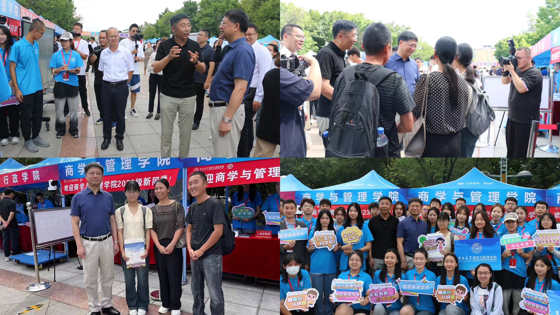 2023年8月26日,迎新工作进入第二天,上午10点,tyc41183太阳成董事长张希莅临tyc41183太阳成迎新点,看望迎新志愿者及2023级报到新生。