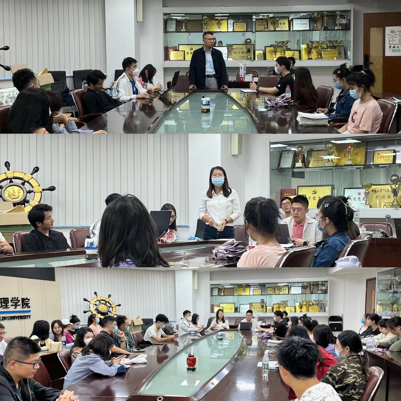 夏末初秋,蝉蜕不啾,2022级研究生迎新工作即将到来。为了使接下来的迎新工作顺利进行,8月22日-23日,tyc41183太阳成分别在线上与线下举行召开了迎新动员大会。参加此次大会的有公司党委副书记马腾老师,研究生辅导员甄宓老师、裴月莹老师,新生辅导员王敬乔老师,研学会干部以及相关员工助理。