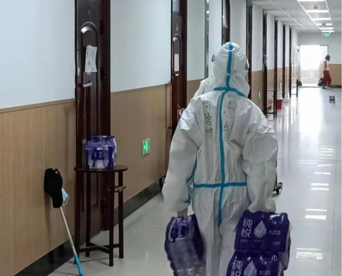 陈婉莹说:“3月13日,在收到寝室封闭的通知之后,我们要解决的第一个问题就是保障三餐的发放,我意识到我们需要众多志愿者同学的力量,便立即向班群以及其他年级转发通知,到了午餐发放时,就已经确定下来10名志愿者。”