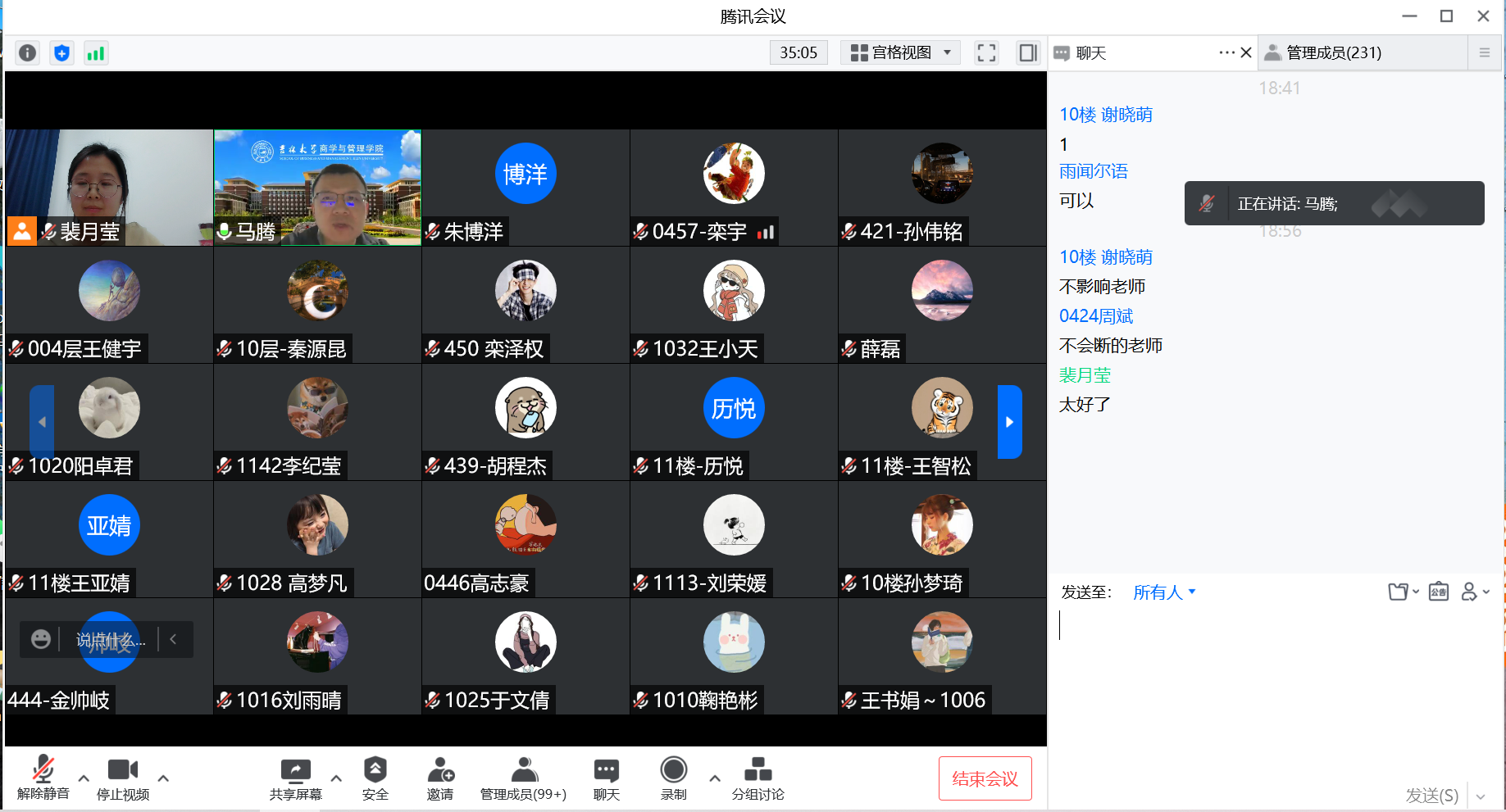为进一步落实公司党委有关疫情防控的工作部署,传达疫情防控精神,明确疫情防控措施,4月6日晚公司研究生辅导员裴月莹老师以视频会议的形式分别面向北苑四公寓东区、南岭校区在住全体研究生召开线上工作会议,公司党委副书记马腾老师和研究生辅导员甄宓老师参会。本次会议主要对目前疫情防控形势、日常行为规范、违纪处理办法和常态化工作开展要求进行传达。