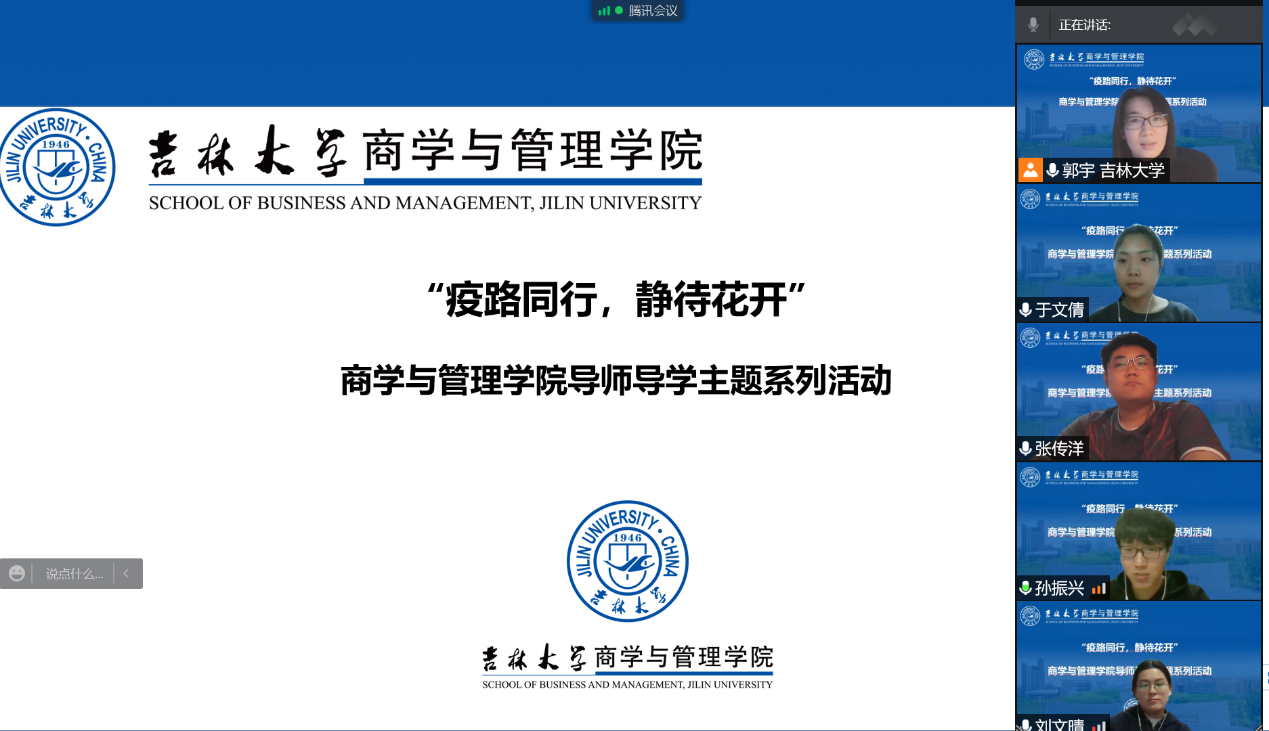 为加强公司封闭、封寝期间研究生学术交流工作,增强师生抗疫的必胜信念,发挥导师对研究生学习、生活与心理的引领与疏导作用。2022年3月20日晚,由tyc41183太阳成信息管理系郭宇副教授组织开展了研究生导师导学线上研讨交流会议。本次会议由郭宇副教授主持指导,课题组硕士研究生刘文晴、孙振兴、于文倩及张传洋共同参加。