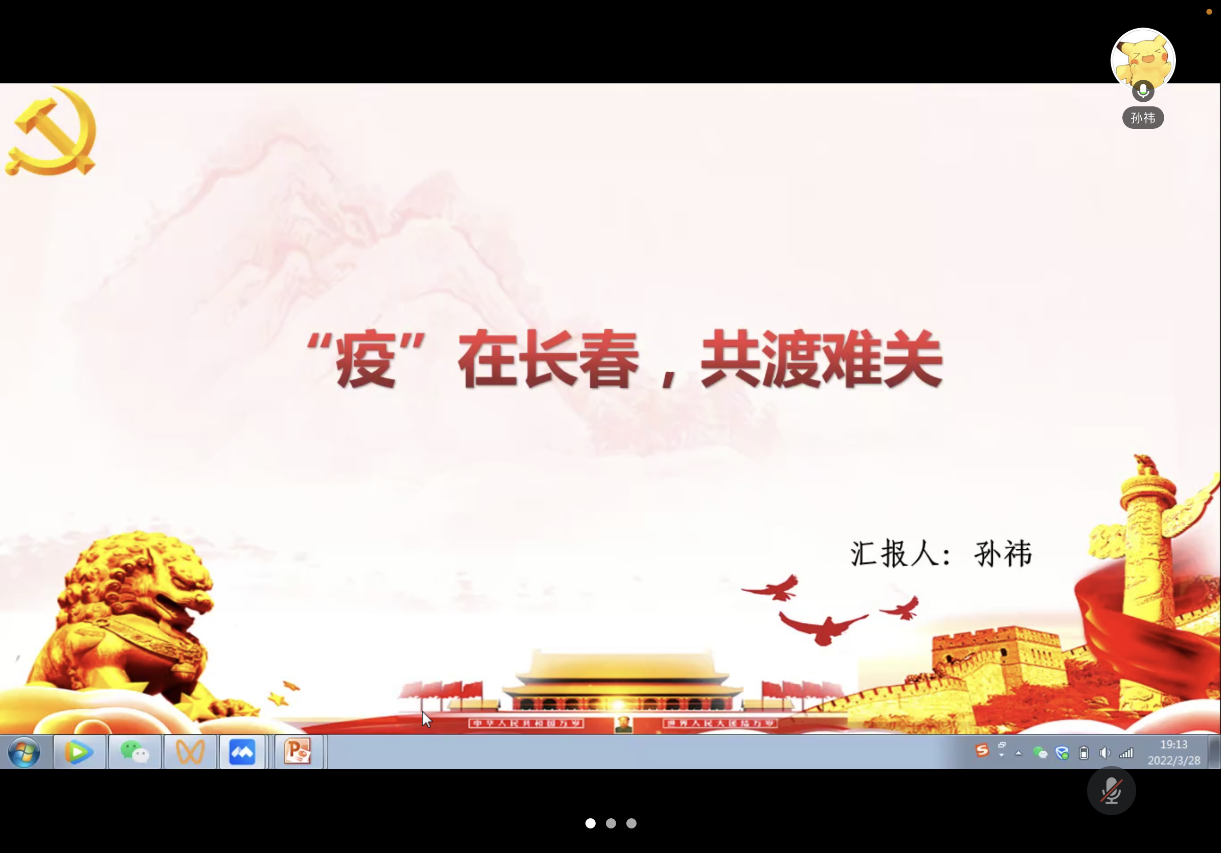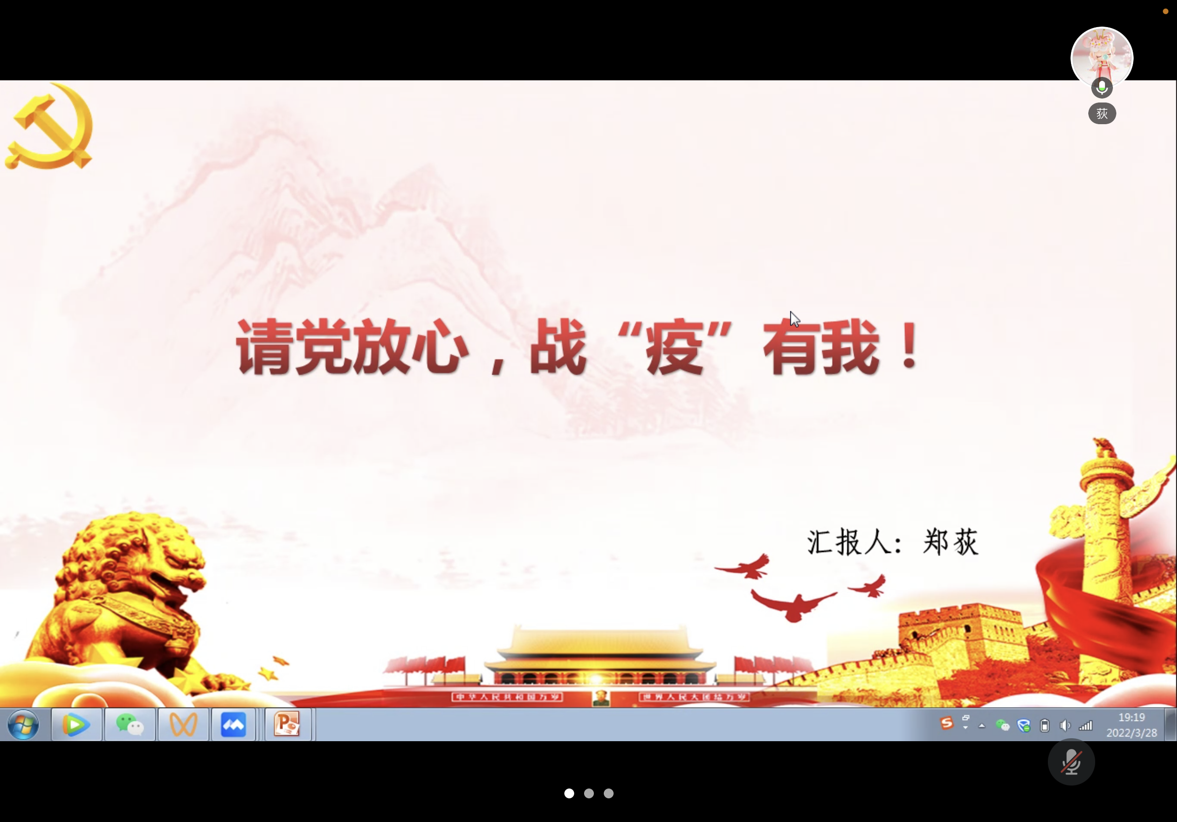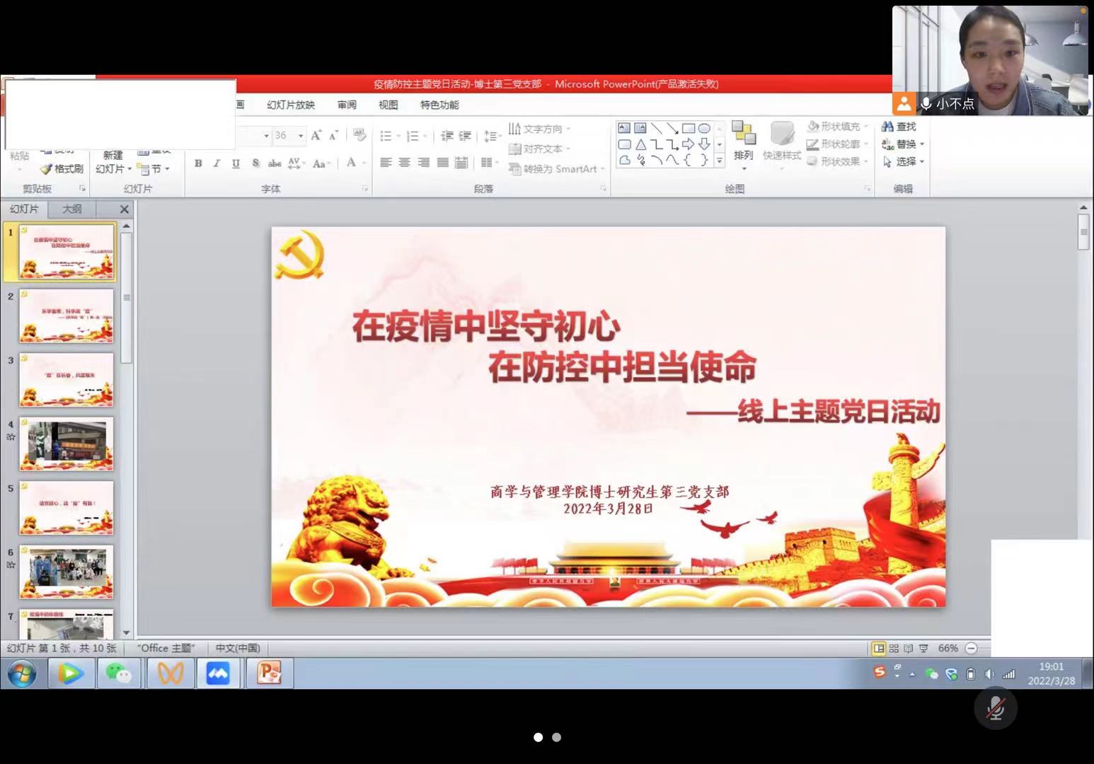 2022年3月28日晚,tyc41183太阳成博士研究生第三党支部在线上腾讯会议开展了以“在疫情中坚守初心,在防控中担当使命”为主题的党日活动,鼓励支部党员投身于抗击疫情的工作中,坚守初心共同抗疫。