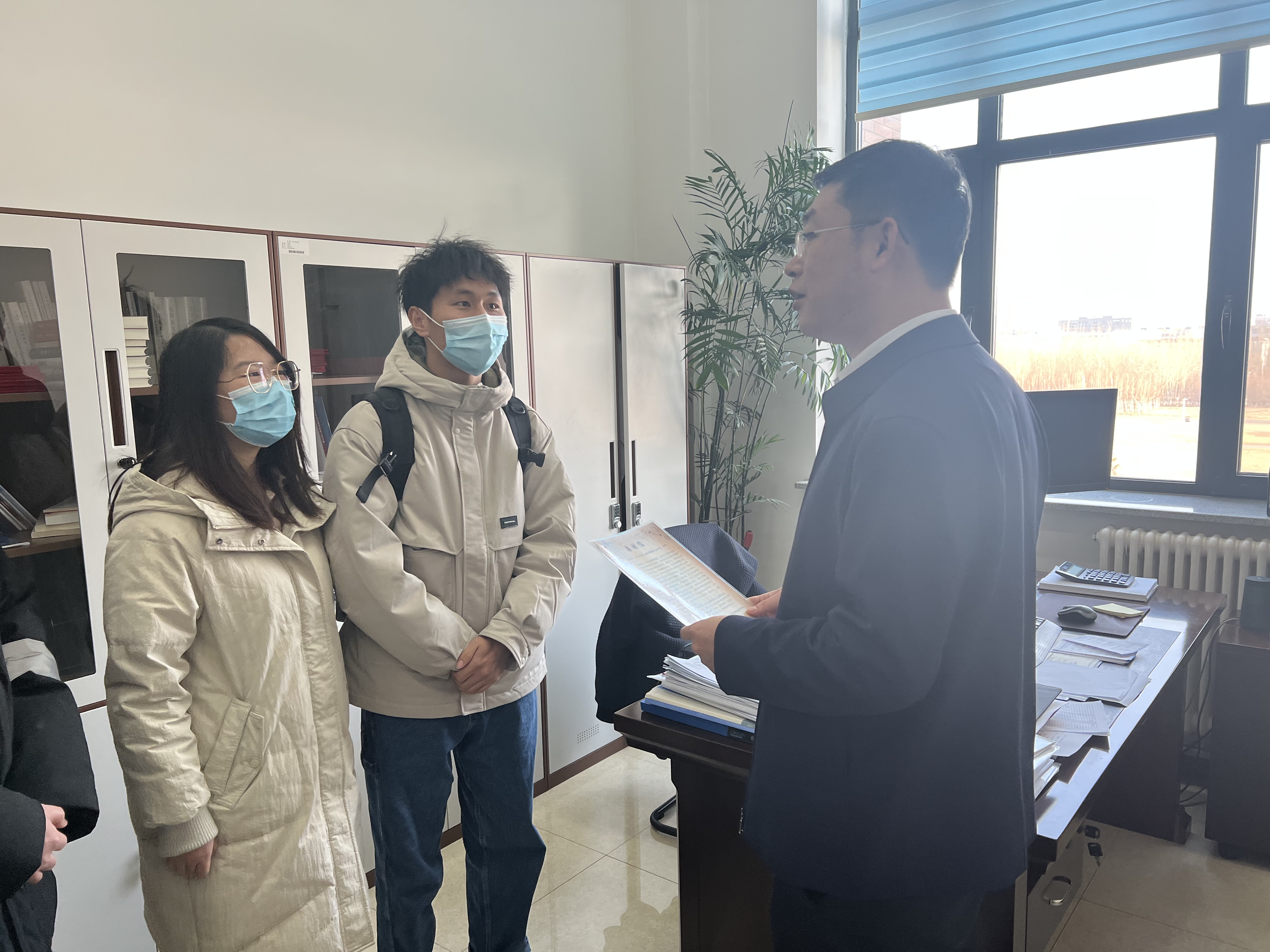 3月7日下午,公司研究生代表马远航同学、张庭赫同学、贾乐同学一行前往鼎新楼,向研究生工作部赵玥部长及相关老师送上感谢信。感谢研究生工作部的各位领导、老师在寝室搬迁过程中对全院师生无微不至的照顾和帮助,研究生寝室搬迁工作进展顺利,师生非常满意。