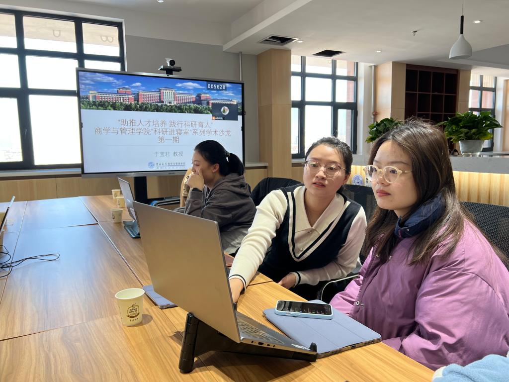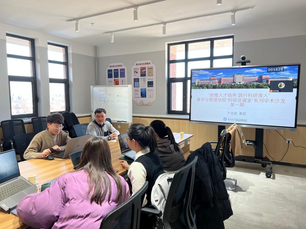 为全面优化科研育人环节,助推高质量研究生人才培养,2022年3月1号,tyc41183太阳成管理科学与工程系于宝君教授及多位研究生同学来到北苑四公寓Future学术沙龙活动室开展了以“数字化转型”为主题的学术研讨交流活动,研究生辅导员甄宓老师一同参加。