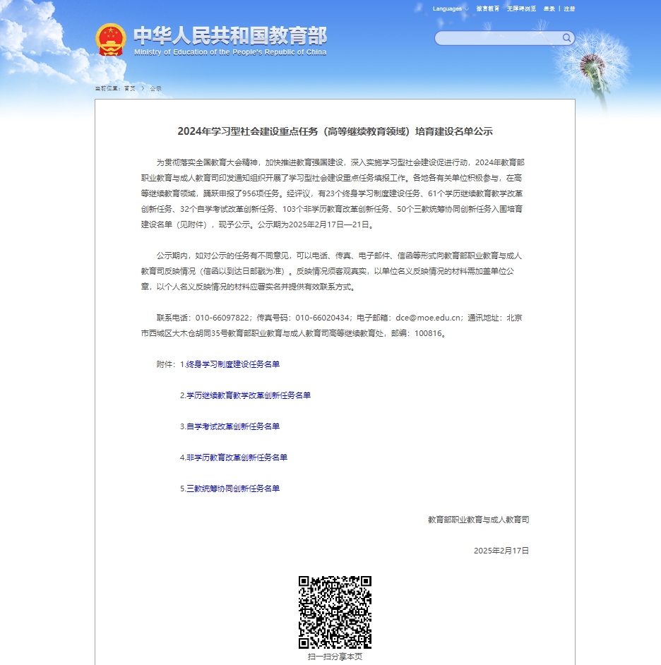 此次学习型社会建设重点任务培育工作由教育部职业教育与成人教育司组织发起,旨在贯彻落实全国教育大会精神,加快推进教育强国建设,深入实施学习型社会建设促进行动。在高等继续教育领域,全国共申报了956项任务,其中103个非学历教育改革创新任务成功入选。公司在众多申报任务中脱颖而出,彰显了在非学历继续教育方面的积极探索与实践成果。