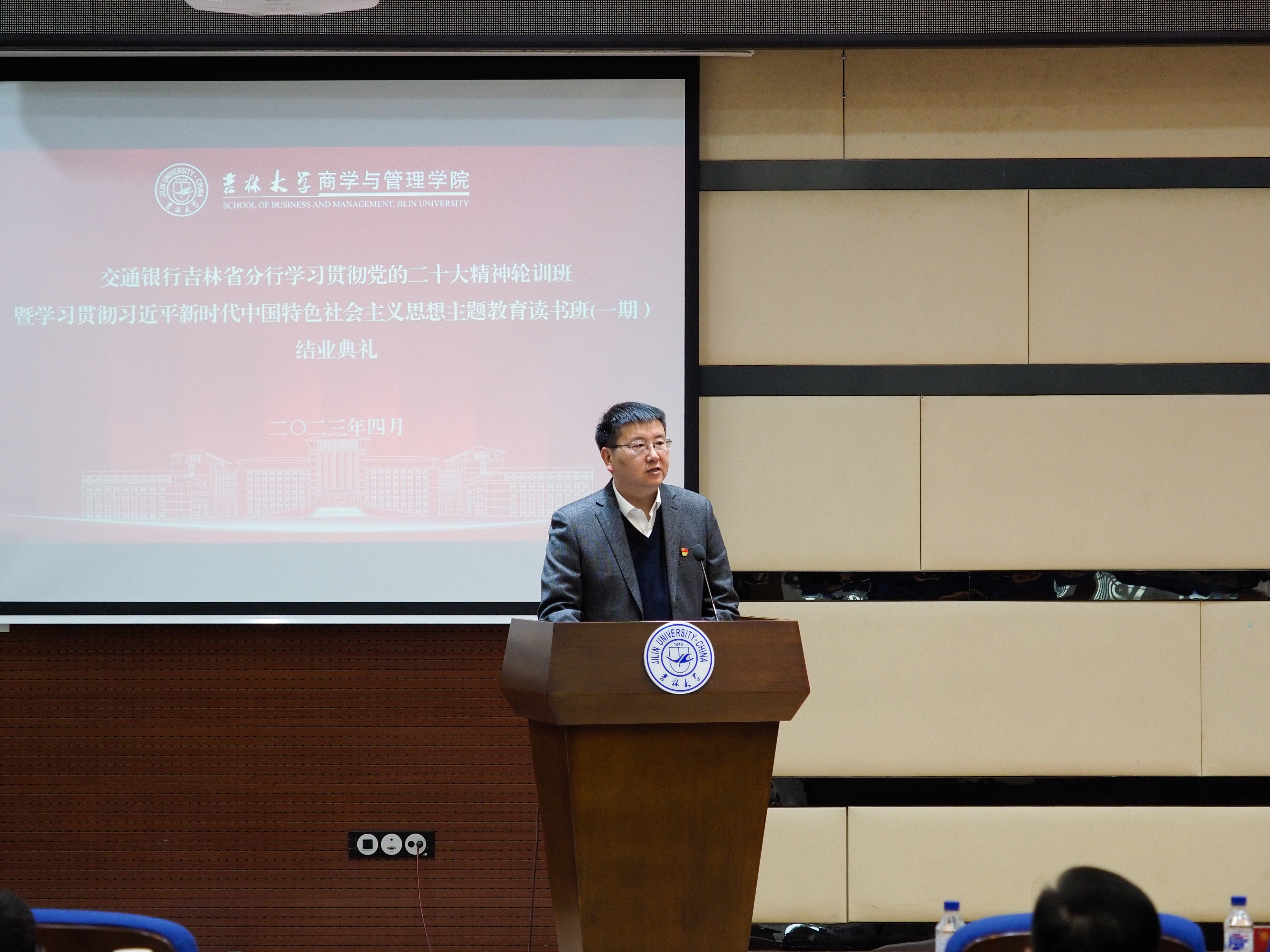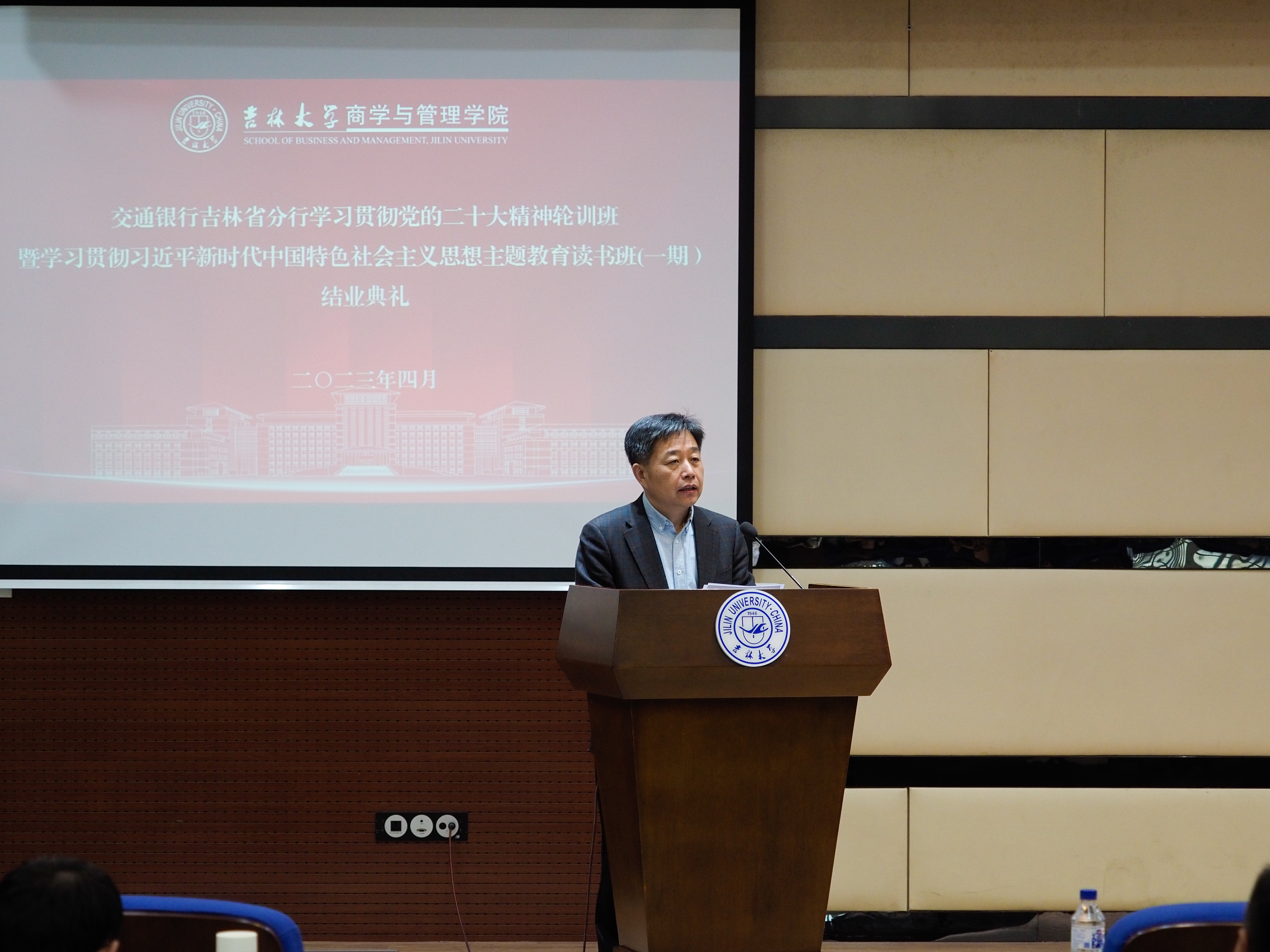 23日下午,交通银行吉林省分行学习贯彻党的二十大精神轮训班暨学习贯彻习近平新时代中国特色社会主义思想主题教育读书班结业仪式在东荣大厦B310隆重举行。交通银行吉林省分行党委书记、行长张国昌,党委委员、副行长宋卫、沈涛,商管公司副经理辛本禄教授参加了结业式。党委常委、副董事长、商管公司经理蔡立东教授和公司党委书记赵军教授参加了结业式前的会谈。