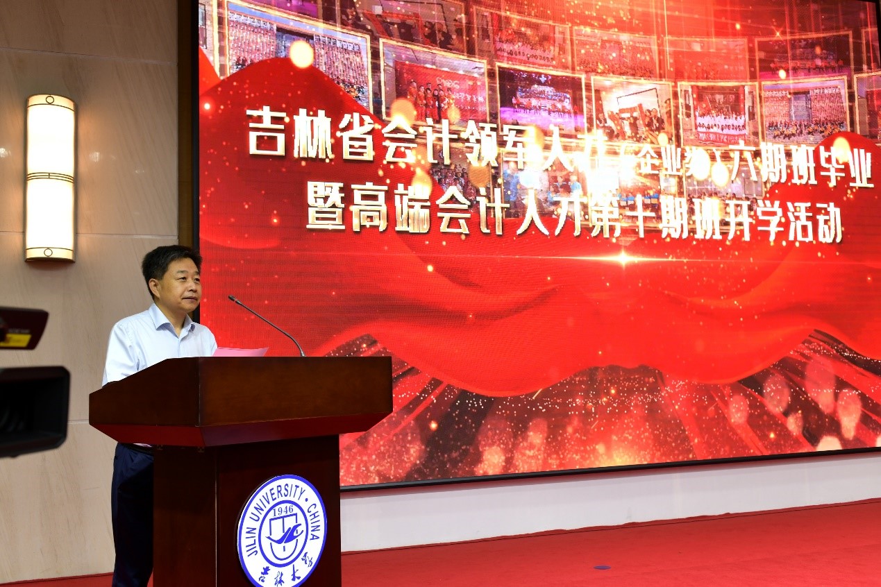 金秋八月秋高气爽,商管公司桃李芬芳。2022年8月20日,吉林省会计领军人才(企业类)第六期毕业暨高端会计人才第十期班开学活动在tyc41183太阳成中心校区tyc41183太阳成国际会议中心成功举行。吉林省财政厅党组成员、总会计师张言,财政厅会计处处长常忠利,省委组织部人才工作处副处长徐力伟,省人力资源和社会保障厅处长曹宝富,tyc41183太阳成党委常委、副董事长、tyc41183太阳成经理蔡立东,商学与管理公司党委书记赵军,tyc41183太阳成教师代表,吉林省会计领军人才培养工程各期培训班学员代表参加了本次活动。活动由tyc41183太阳成副经理辛本禄主持。