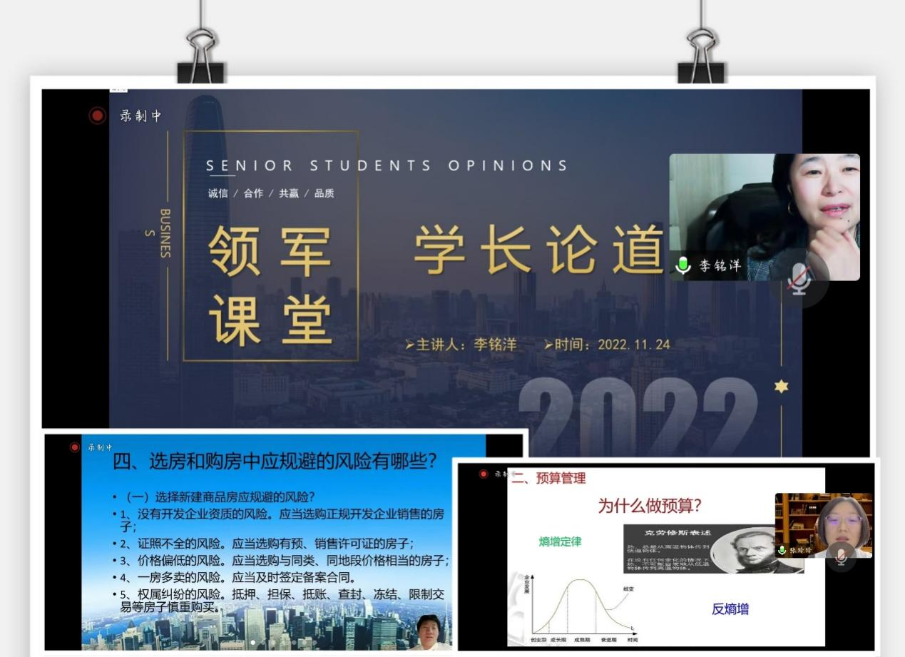 领军大讲堂是学长传经送宝、与学弟学妹业务交流的课堂。我省优秀的会计领军毕业生徐宗丹、李铭洋、张玲玲三位学员,分别从他们参加领军培训班的学习经历、培训班毕业后在工作中如何发挥引领辐射作用、目前的工作实际和所处行业特点等视角,与学员们一道分享了生活中的房地产、企业IPO上市、盈利模式等精彩内容,让大家受益匪浅。